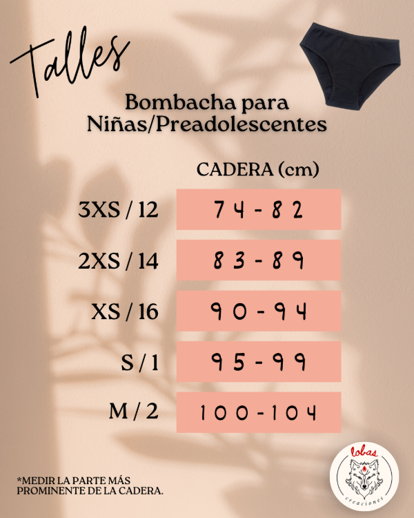 Generalmente es el mismo talle de bombachas comunes que usás siempre.